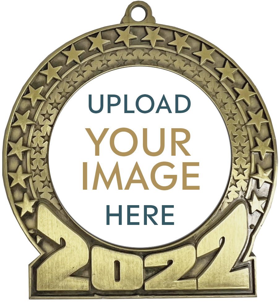 Our 2022 Custom Insert Medals are a Low Priced Medal that can be Customized for Any Sport or Activity of your choosing. This medal comes with a laminated insert sticker where you can upload your own artwork or even a photograph! Make 2022 a year defined by victory and achievement. Engraving is unlimited!