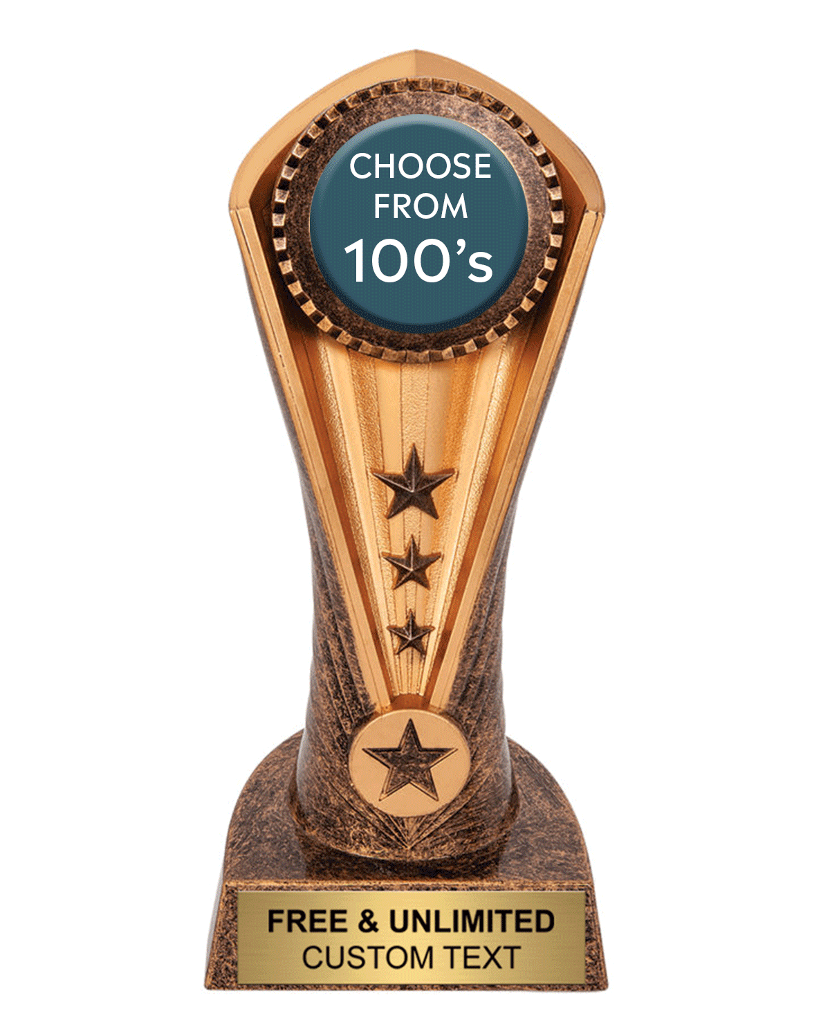 The Cobra Insert Award comes in at 7.5″ and comes with hundreds of options for your color insert sticker. This 100% hand painted resin award is completely unique and will make heads turn for sure. Works for any sport or activity!