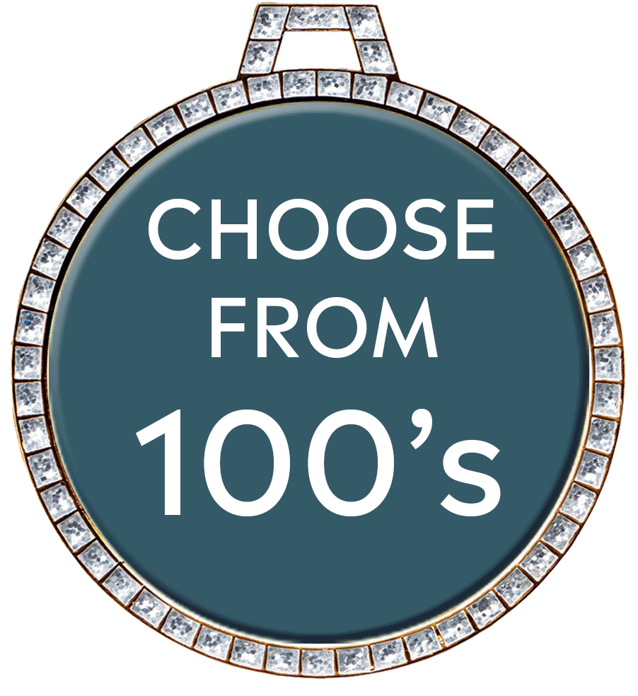 We’re putting the BLING in medals with this cool Diamond Insert Medal. The surrounding edge of each medal has a “diamond sparkle” look to it that makes these medals very unique and exciting. These totally awesome medals allows you to pick one of our colorful inserts from our list of hundreds of activities and sports. The medal is 2.25″ and comes in Gold, Silver or Bronze. Medals also come with your choice of attached ribbon.