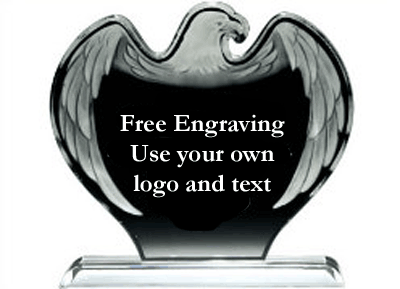 The Frosted Eagle Acrylic Award has amazing details from the eagle’s facial features to the graceful sweep of its wings. This elegant Acrylic Eagle Trophy is the perfect award for any occasion! The white laser engraving, including a logo if desired, is included in the price. These trophies are awesome!
