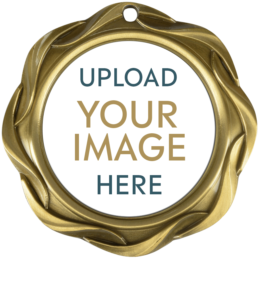 The 2.75″ Fusion Custom Insert Medal series introduces a huge level of style and substance to our medallion line up. Upload your very own artwork, logo or photograph for a truly unique medal. This smooth antique finished medal covers the gambit and will make a splash in all activities this season. Comes in gold, silver, and bronze. Name plates are laser engraved and are affixed to the back of the medal.