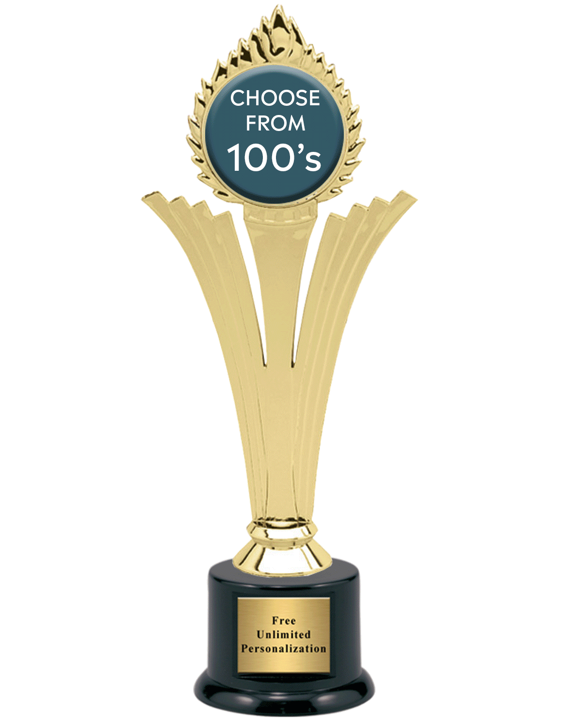 The insanely tall Victory Tower Insert Trophy is a stunning 10.25″ plastic trophy standing on a black weighted plastic base. This is a great value for the amount of award you get in one fantastic package. The best part about this great trophy is that you can pick one of our colorful inserts from our list of hundreds of activities and sports. On top of that, personalized text is 100% free and unlimited!